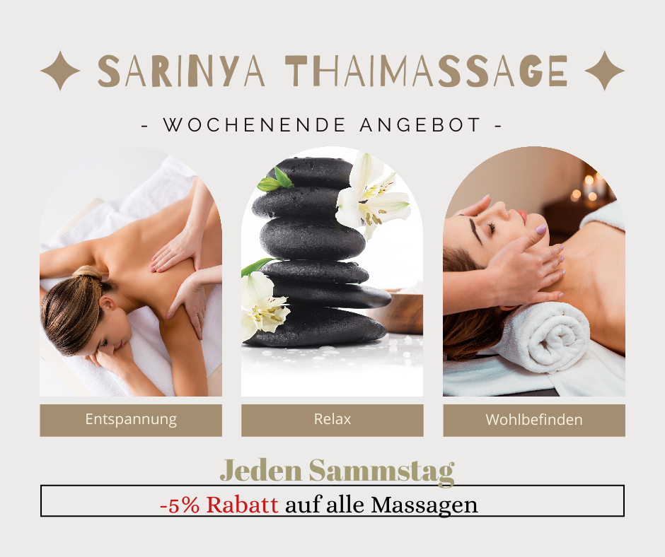 - – 5% Rabatt JEDEN SAMSTAG AUF ALLE MASSAGE BEHANDLUNGEN